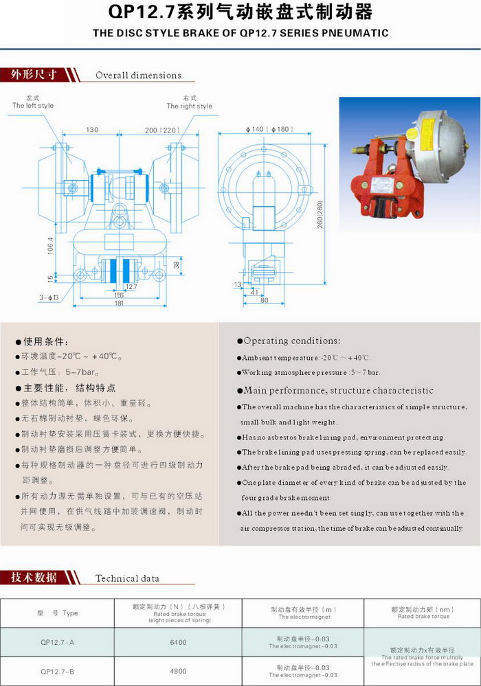 氣動鉗盤制動器QP12.7,CQP12.7,QPL12.7,QP20,QP250,QP30等型號,性能安全可靠,制動平穩(wěn),使用壽命長。